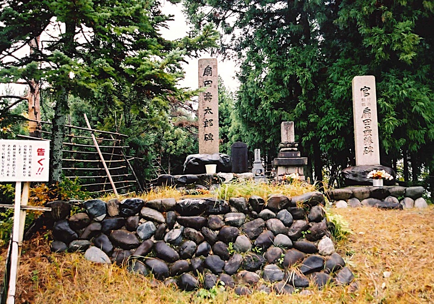 中央:扇田寿太郎碑、右:官公務犠牲扇田最勝碑