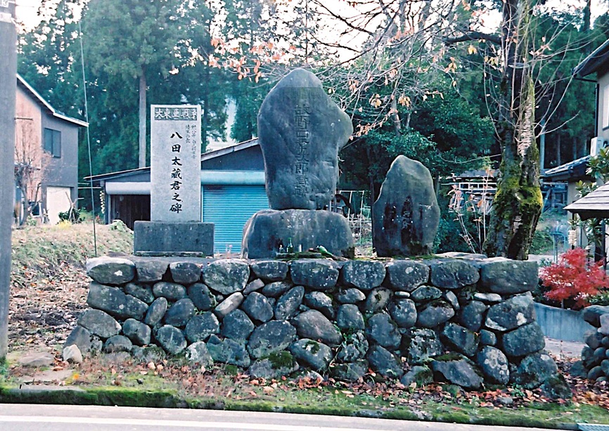 左:八田太蔵君之碑、中:故野口幸次郎君碑、右:野口幸次郎墓 |