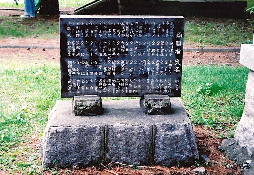 茲に広くこの奉公の事蹟を銘記し殉難死亡者の冥福を祈る