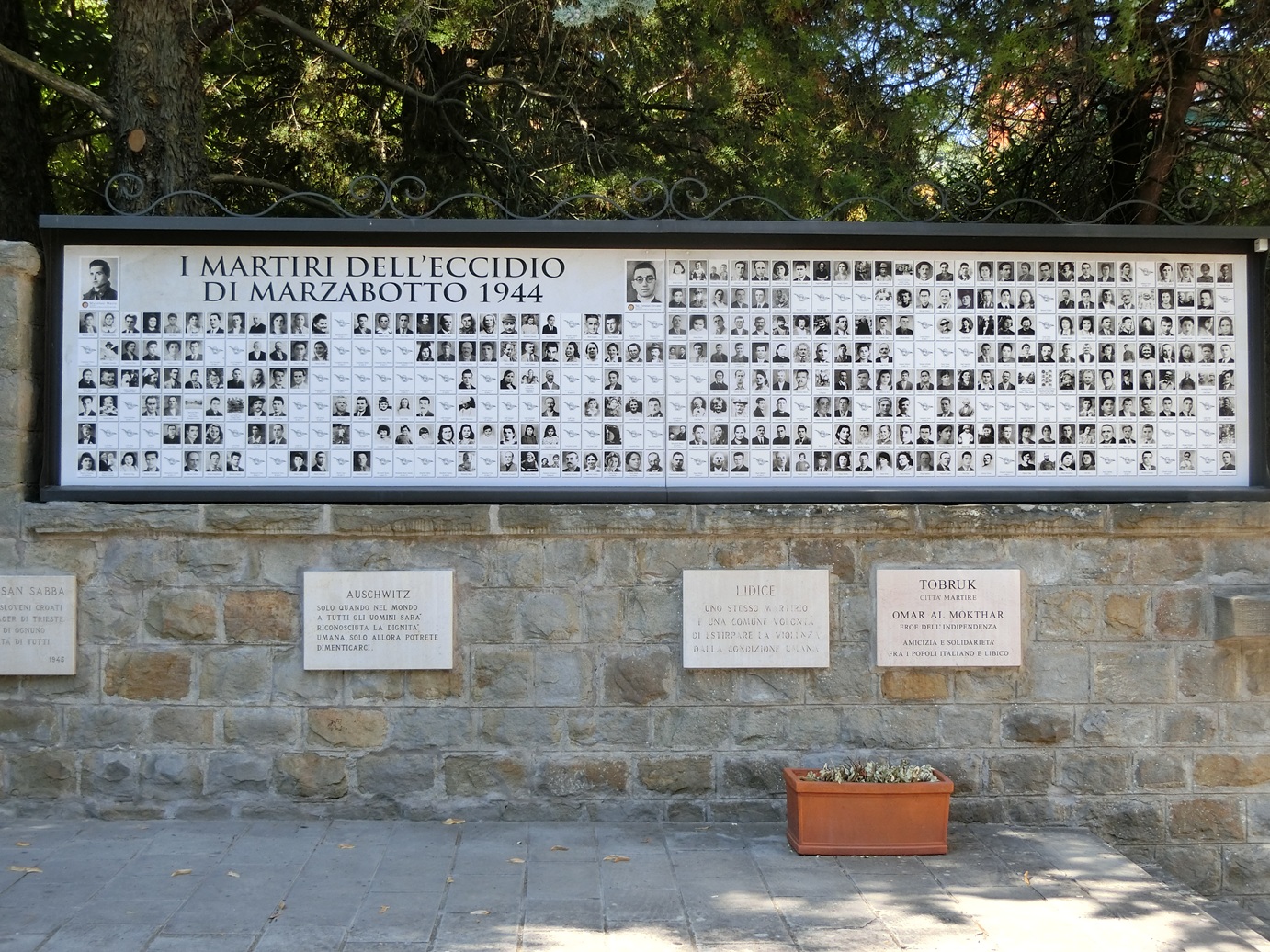 (左側石板) I MARTIRI DELL'ECCIDIO DI MARZABOTTO 1944