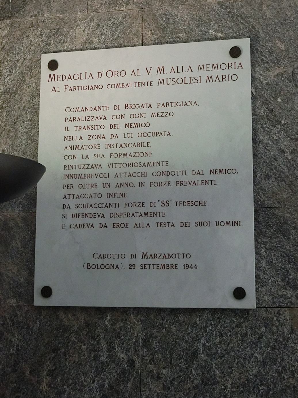 AL PARTIGIANO COMBATTENTE MUSOLESI MARIO