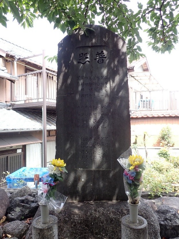 大東亜戦争昭和二十年七月十七日空襲に際し敵弾に斃れたる者は誠に不幸同情に堪えざる所なり因て今回同志相計り忠魂碑建設供養と共に此の碑を建てヽ聊か其の霊を慰む